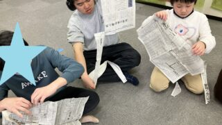 今回は新聞紙を使った遊びをです。最後には紙吹雪で楽しみました。 まずはチームで風船運び。二 ...