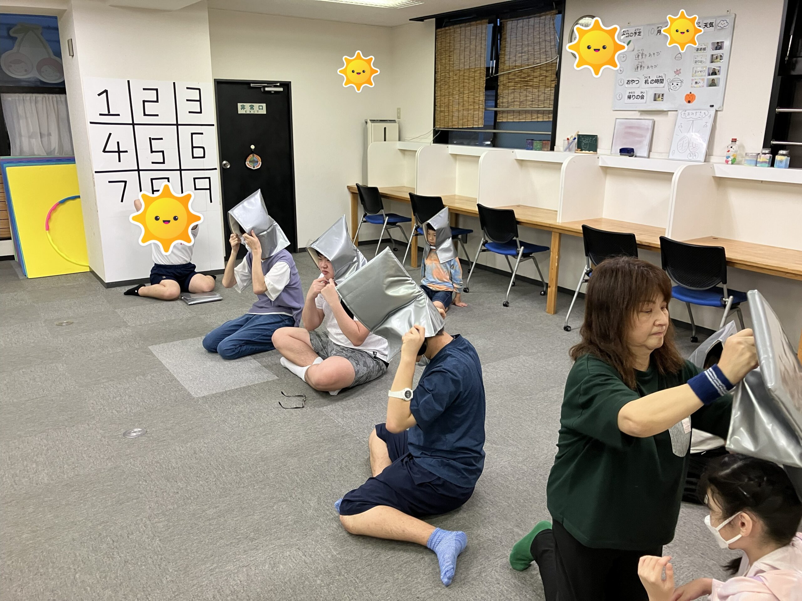 先日、地震を想定した避難訓練を実施いたしました。利用児の皆さんへの安全確保の指導ならびに、安全な移動導線の確保、誘導の流れといった手順を確認しました。