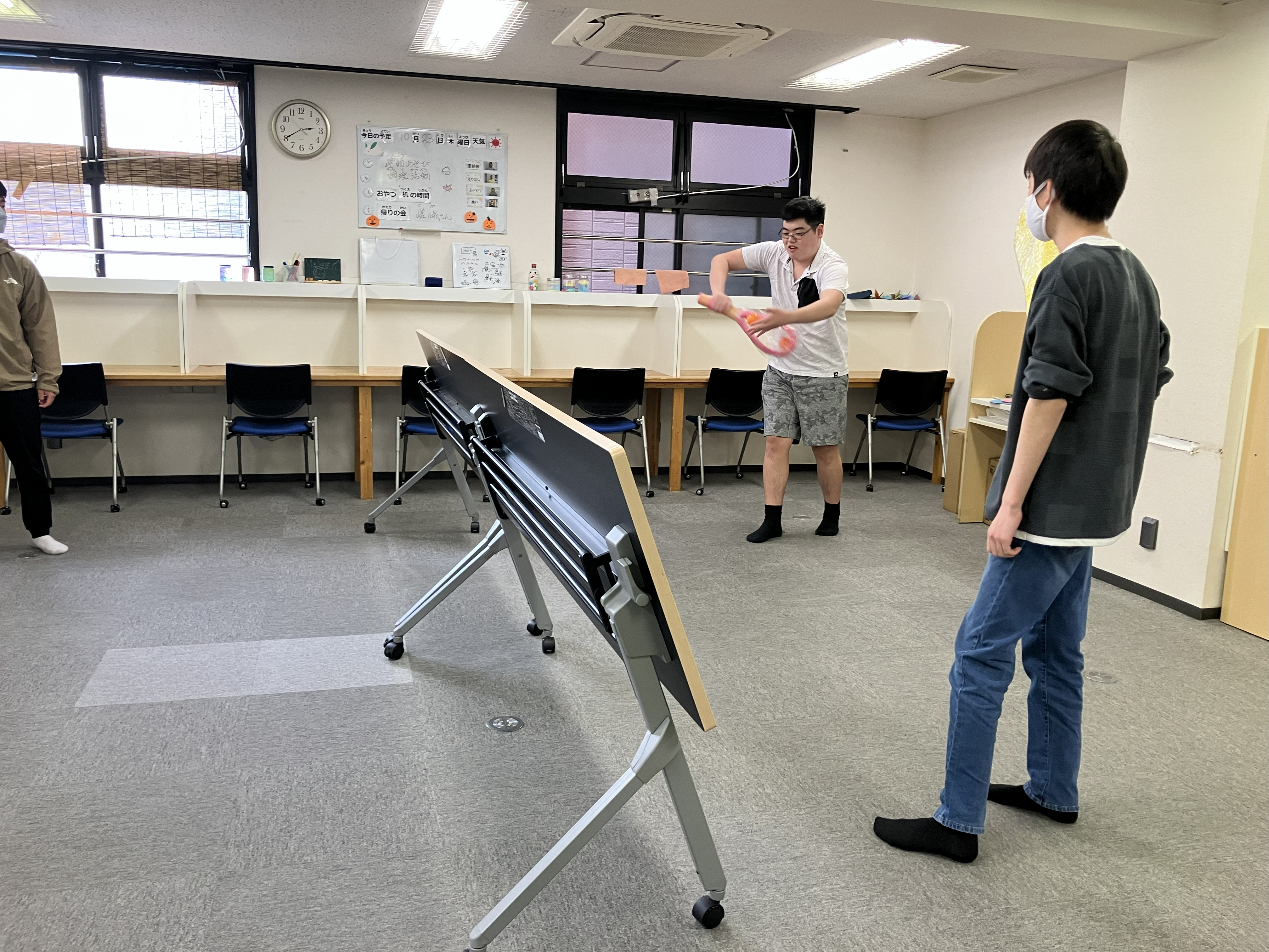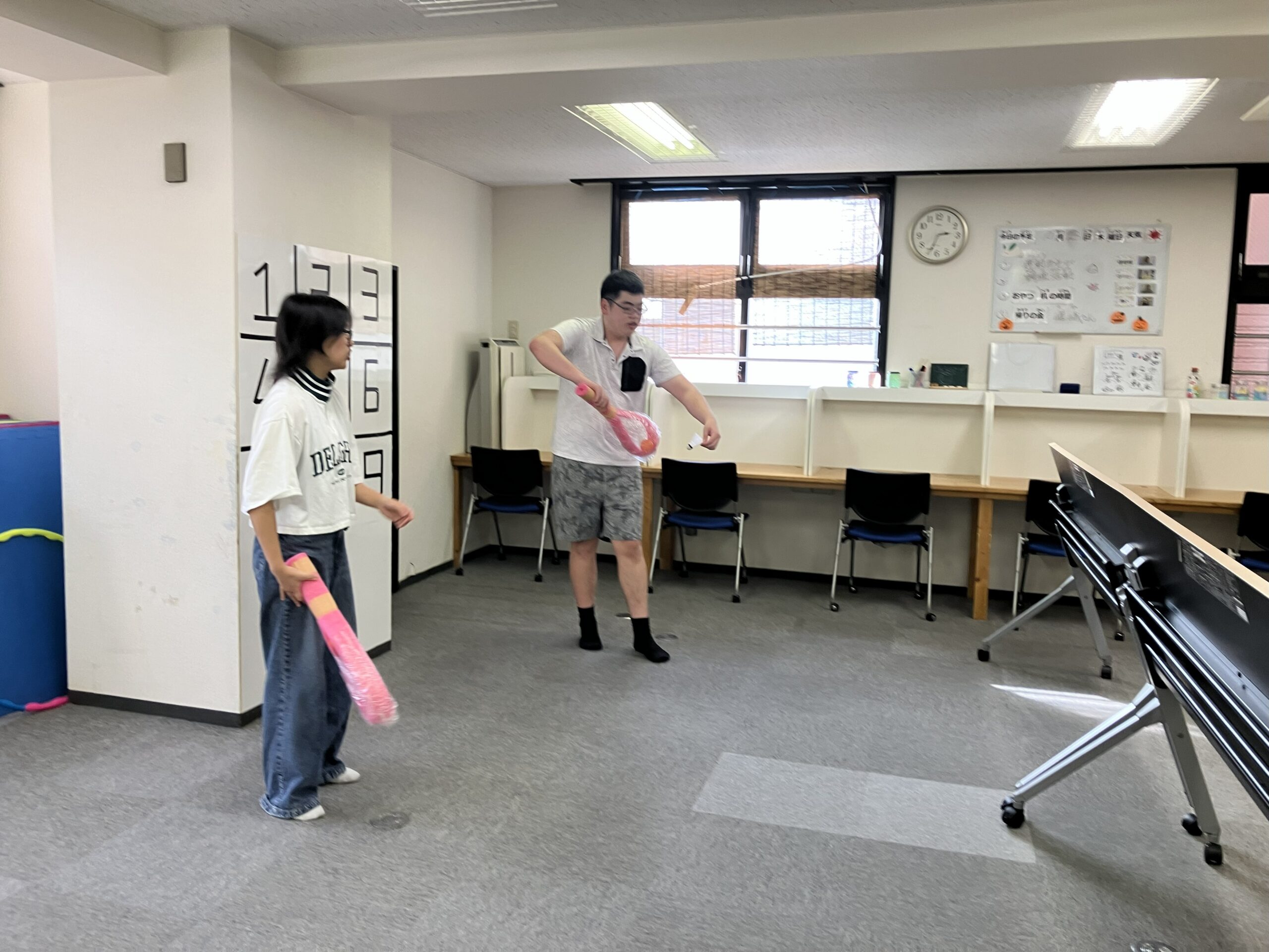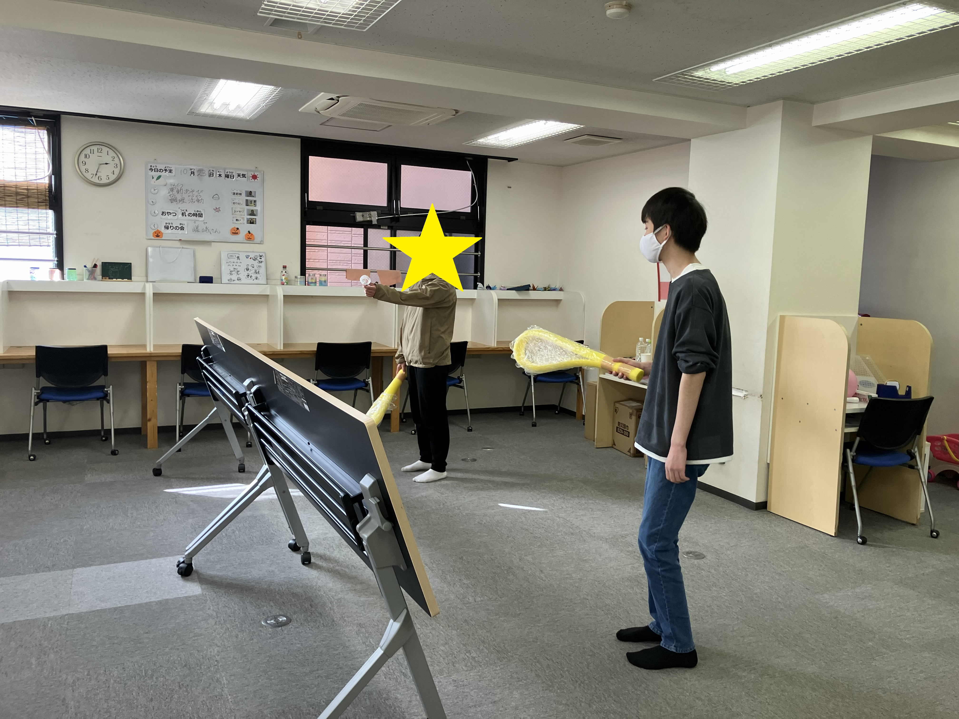 今回は、プールスティックでラケットを作って、バドミントンをしました!