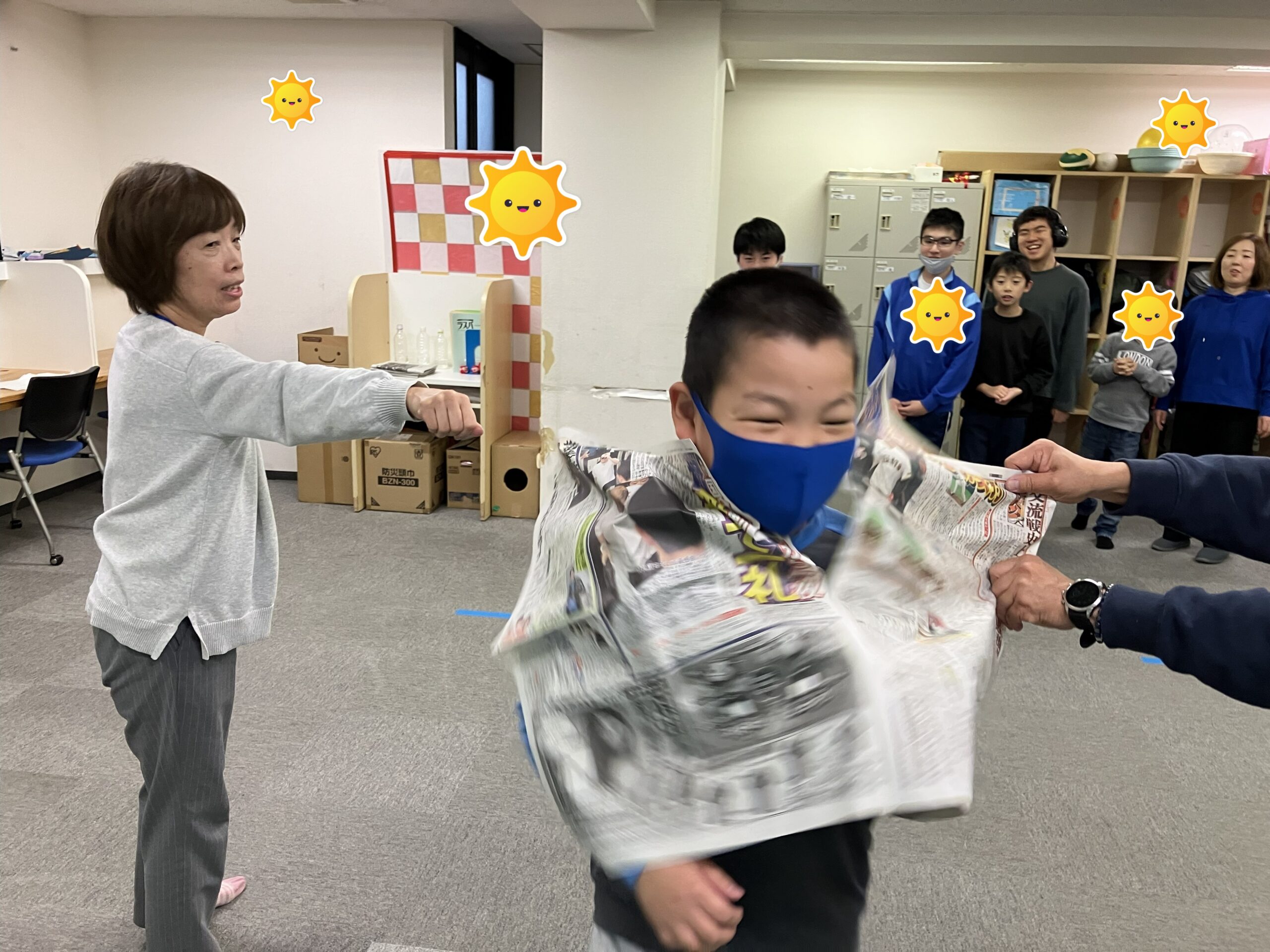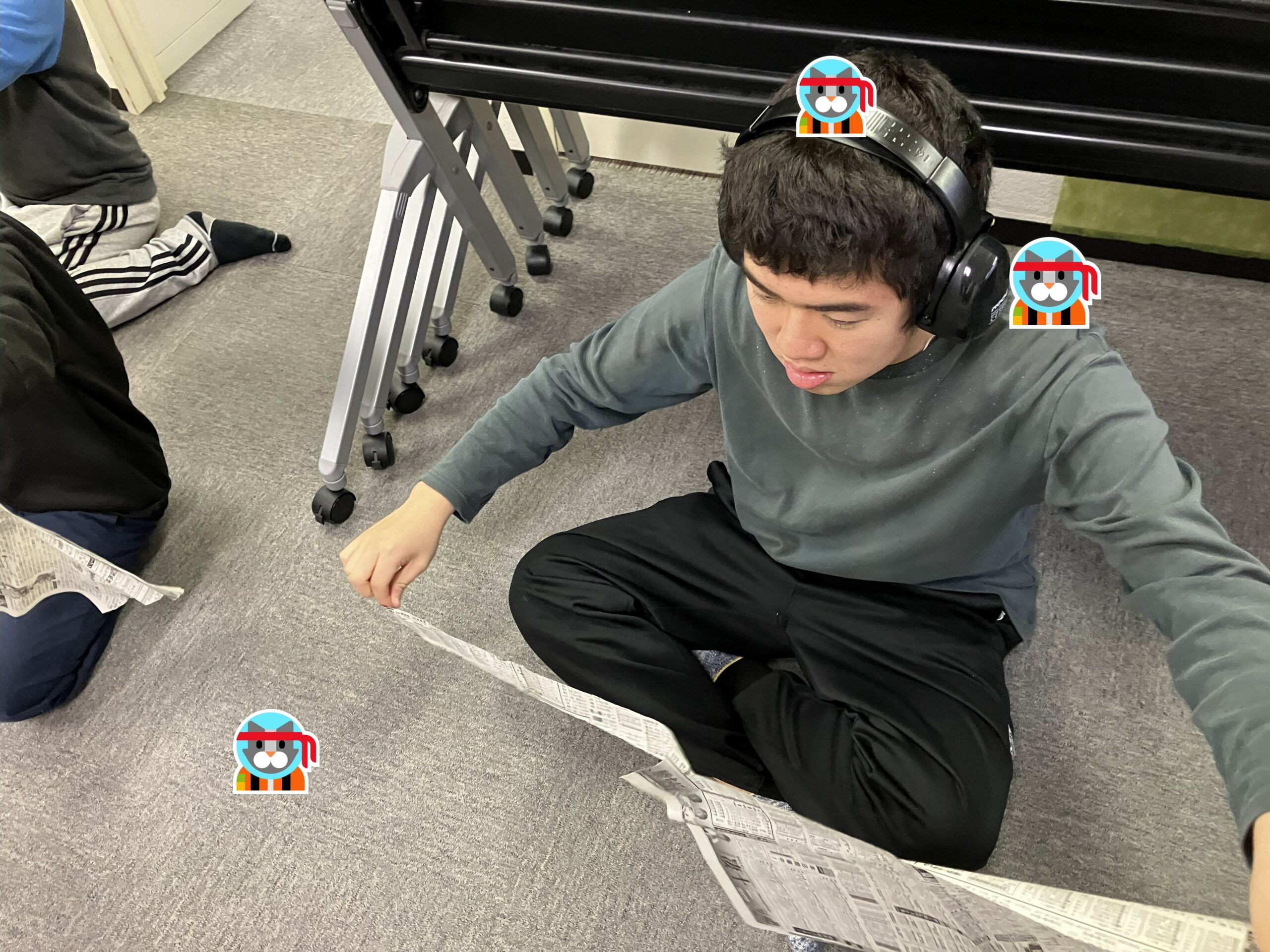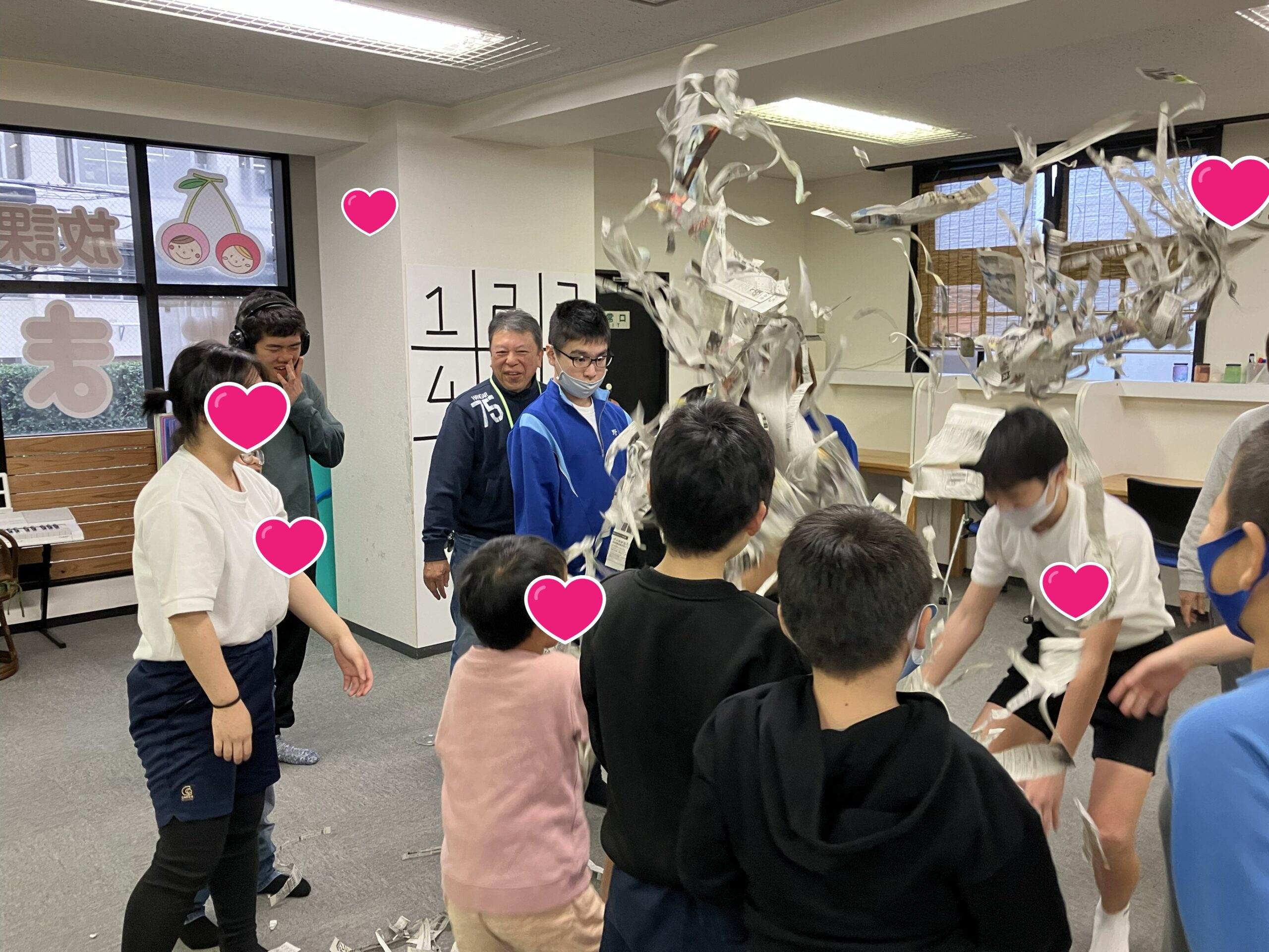 皆さん遠慮なく新聞紙を破ってくれました。