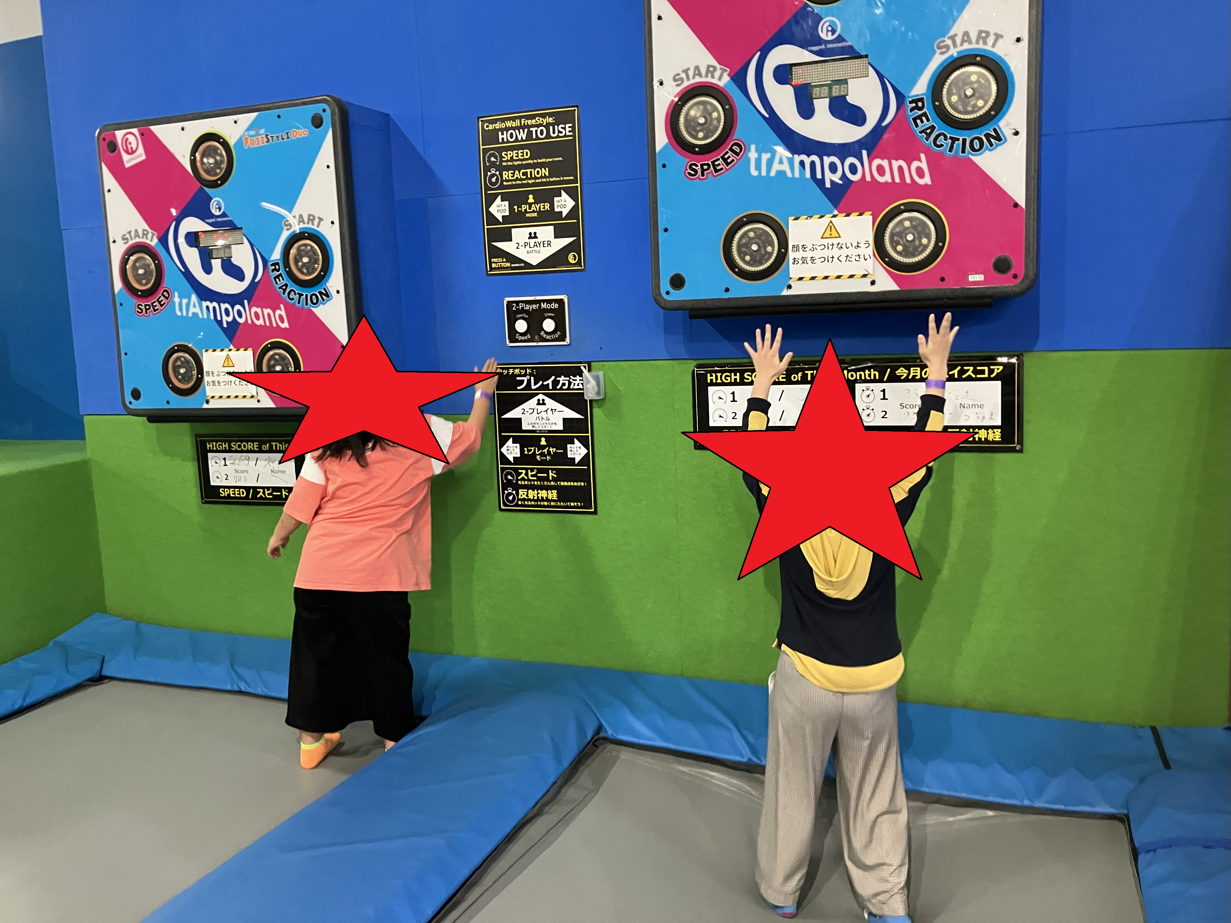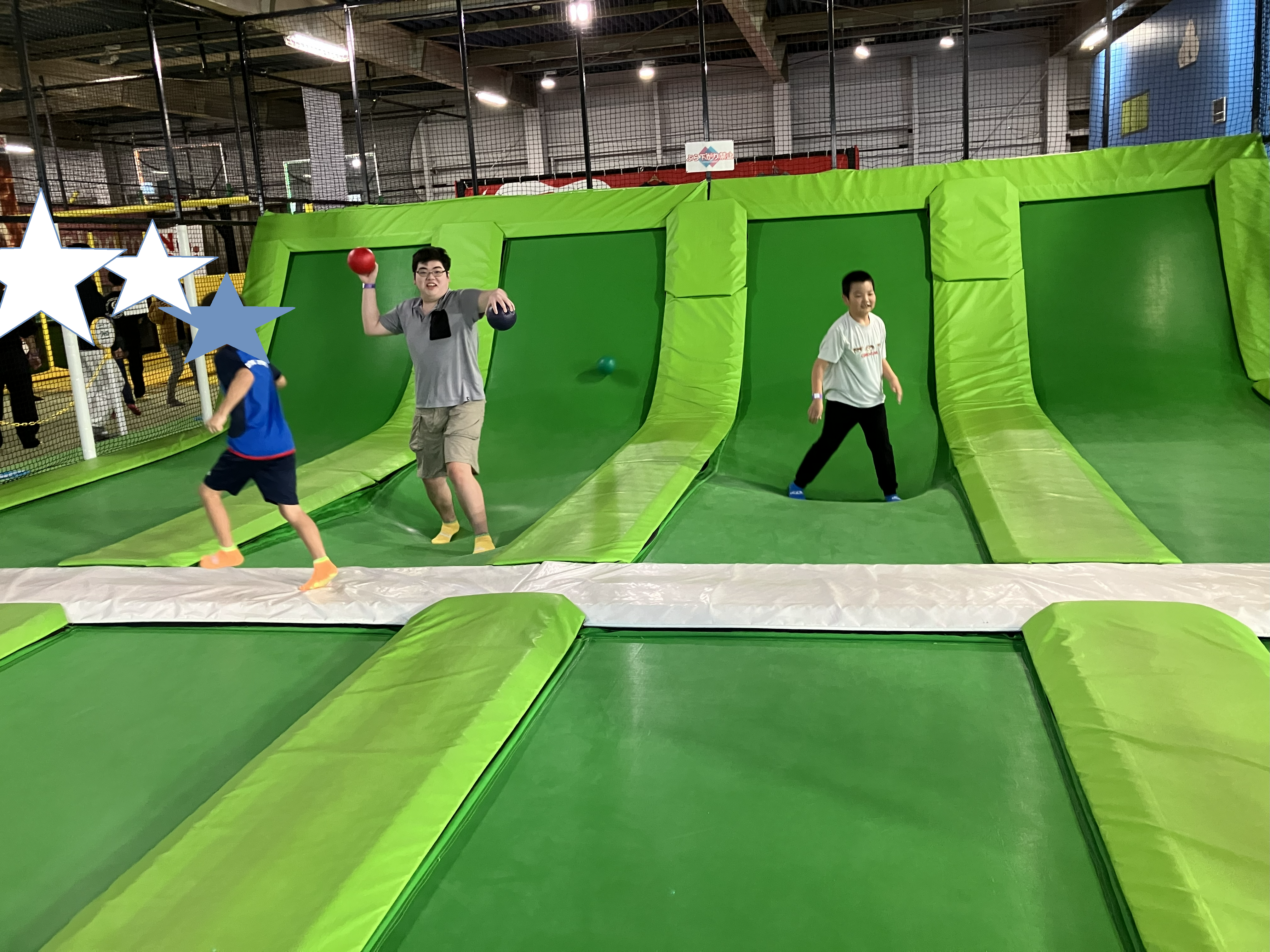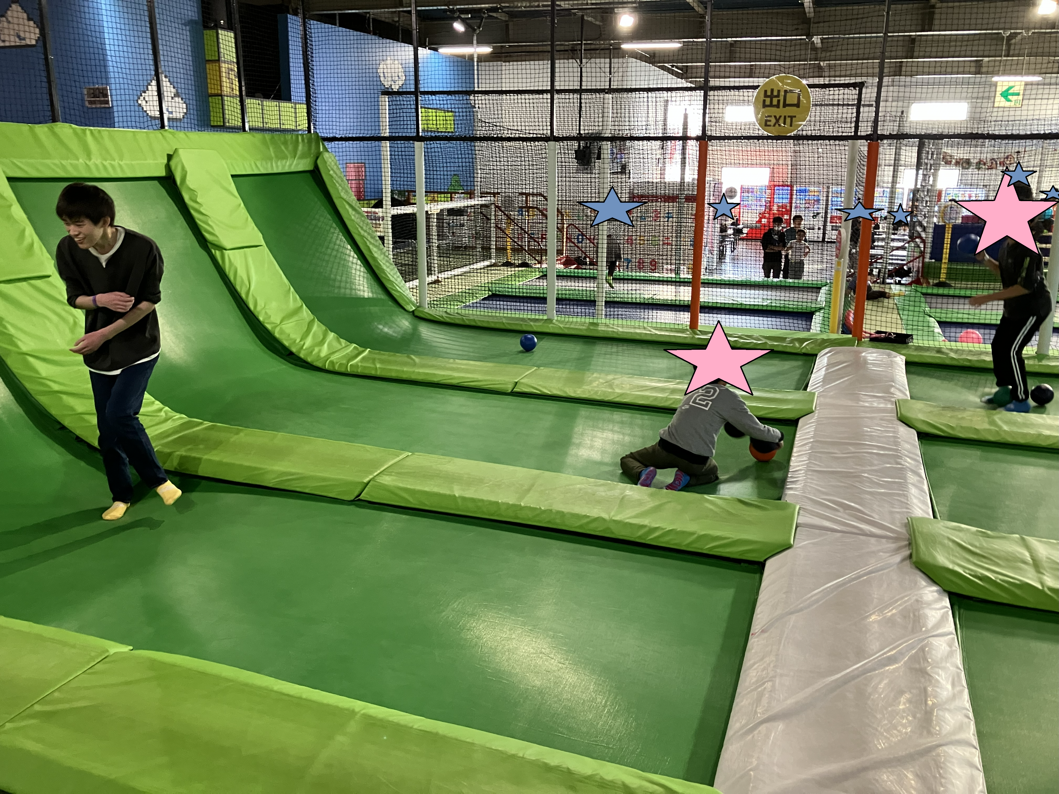他のトランポリよりもよく跳ねる、競技用に近いトランポリンがあったりもしました!