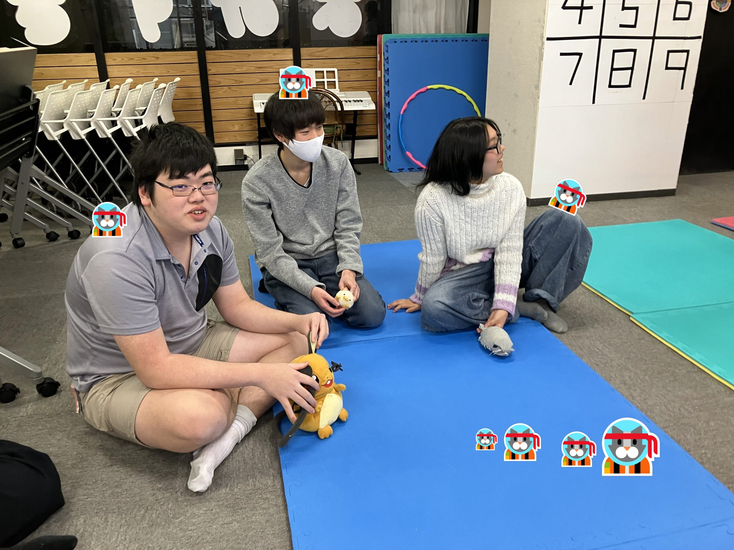 プレーヤーの皆さんが、手に持つのが自身の分身(アバター)です。3チームに分かれて、チームごとに色の異なるマットを進んでいきます。