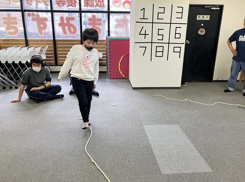 ロープを使った粗大運動 ロープを使って身体を動かします。 準備体操で身体をほぐします。 まずはロープの上を歩きます。 上手に渡れるよう頑張ります。 ロープの上をジャンプして跳び越えます。 そしてロープを飛び越えたりくぐったりして身体をいっぱい動かしました。 2026年4月2日放デイPosted by たまみずき 朝霞