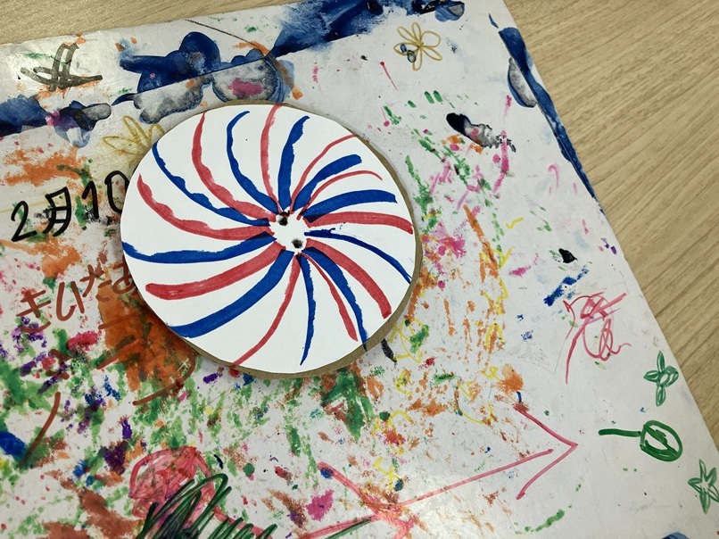 今回の工作はぶんぶんコマを作りました。