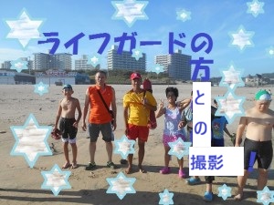 毎回、一日活動の時など感じるのですが、たまみずき朝霞のみなさんがイベントとなる活動を行う時には、天候に恵まれることが多い!今回も同様です。ライフガードの方と記念撮影もしました。