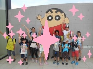 工場入口には、クリクラのイメージキャラクターのクレヨンしんちゃんが!
